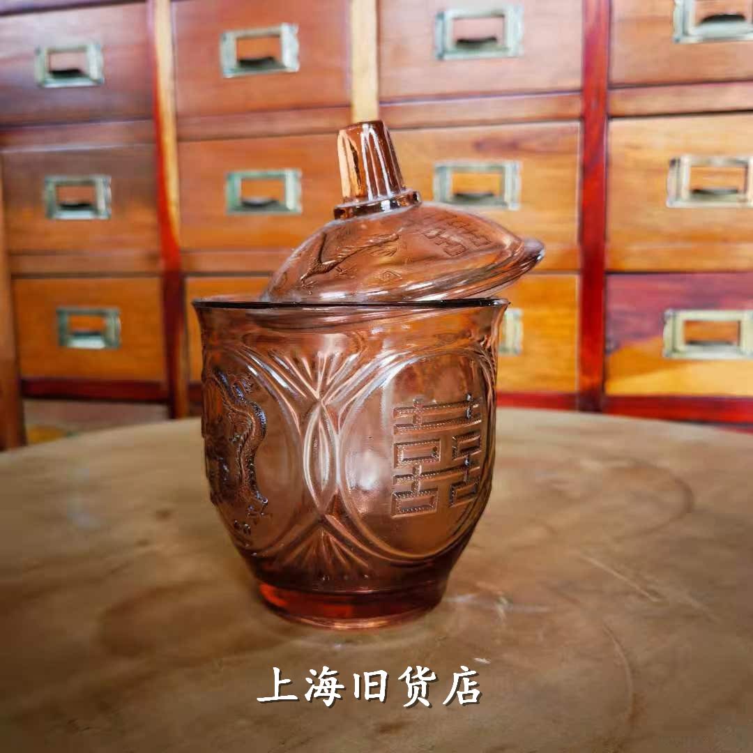 Cultural Revolution glass old sugar jar a pair of full product phase nostalgic rare package old coffee hotel bar decoration