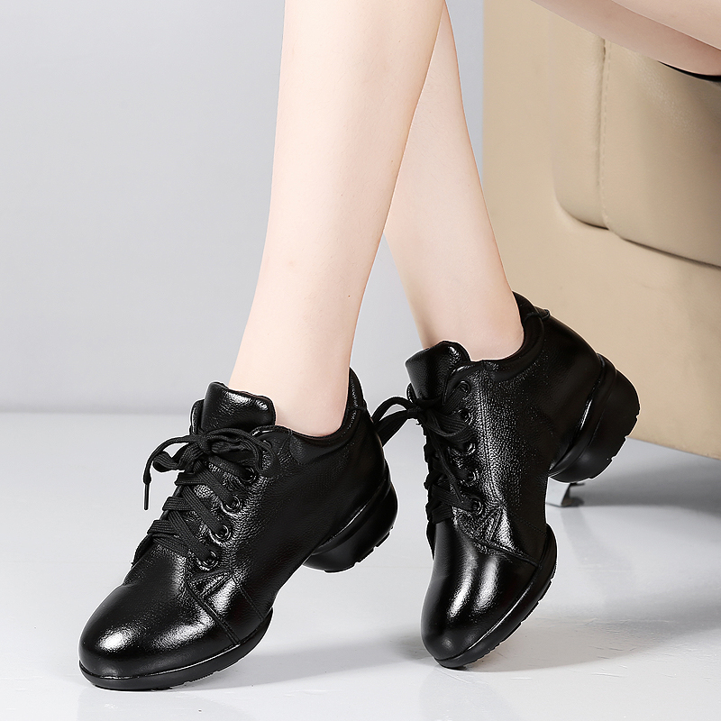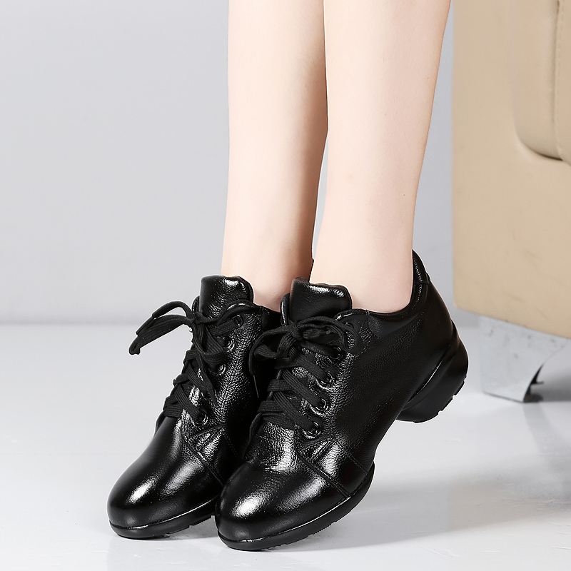 2019 new women's leather black square dance shoes Latin dance modern dance modern dance pas de deux general winter