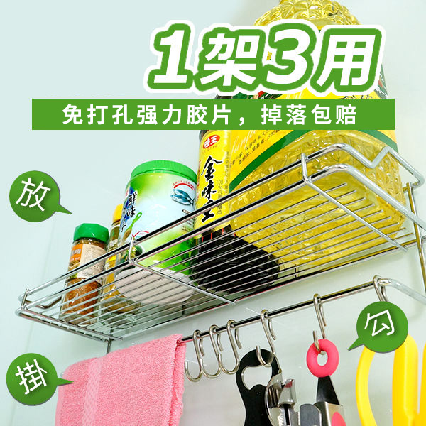 Kitchen rack wall-mounted punch-free stainless steel seasoning household kitchen utensils medium-sized towel storage rack