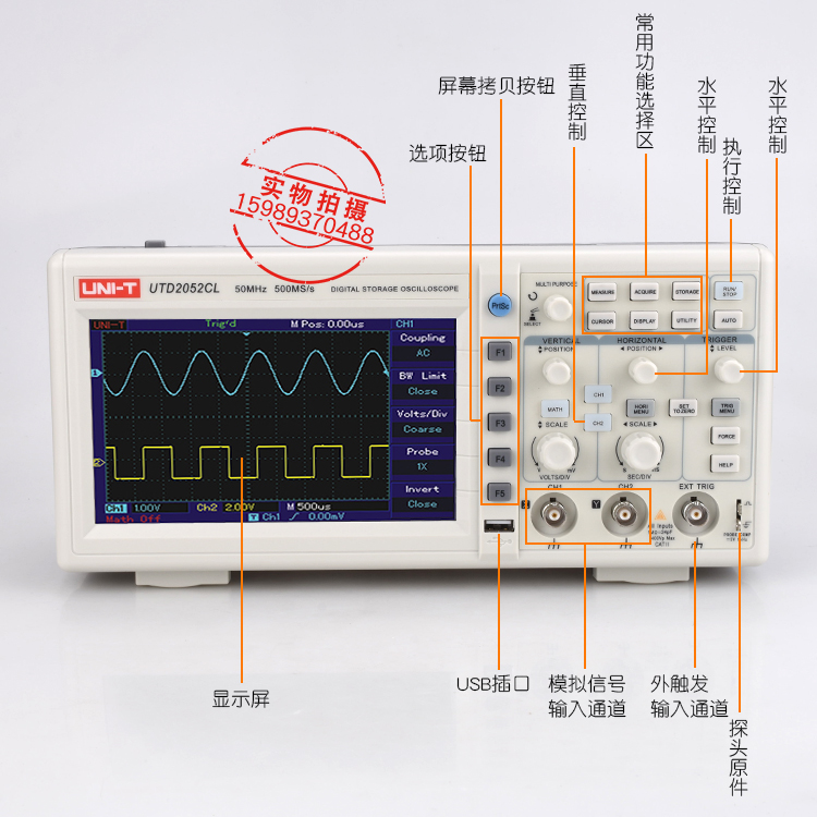 Uliid oscilloscope UTD2102CEX dual channel digital oscilloscope 100M oscilloscope 200M high-pressure monitor