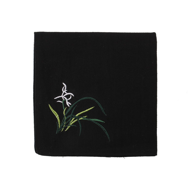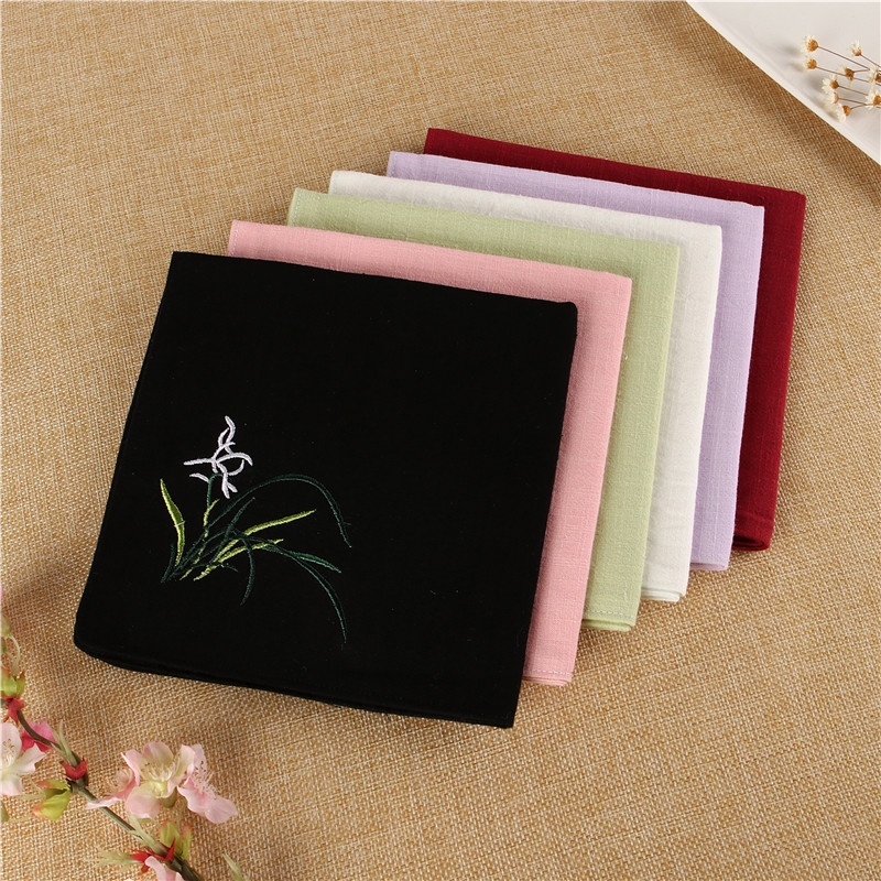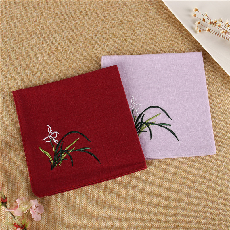 Ancient embroidery orchid handkerchief Women's original embroidered word handkerchief Pure cotton hemp sweat-absorbing men's square towel sweat-wiping handkerchief