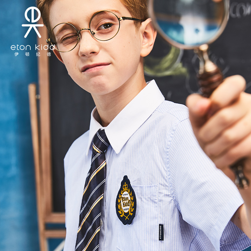 Eaton Guild school uniforms boy light blue and white striped short sleeve shirt student Inlen pure cotton shirt Summer 10C110