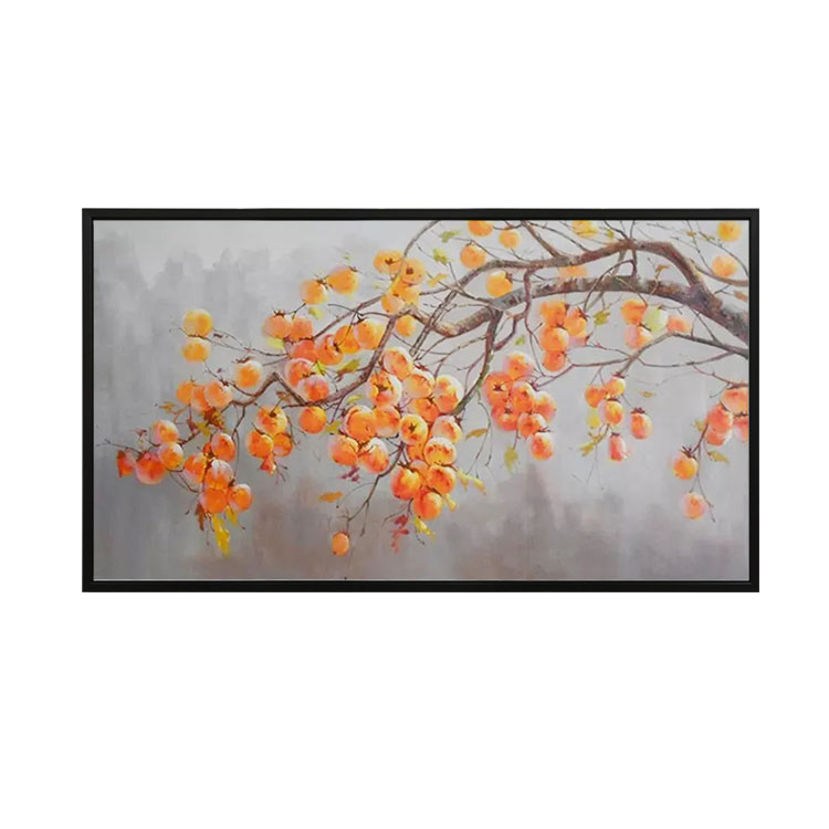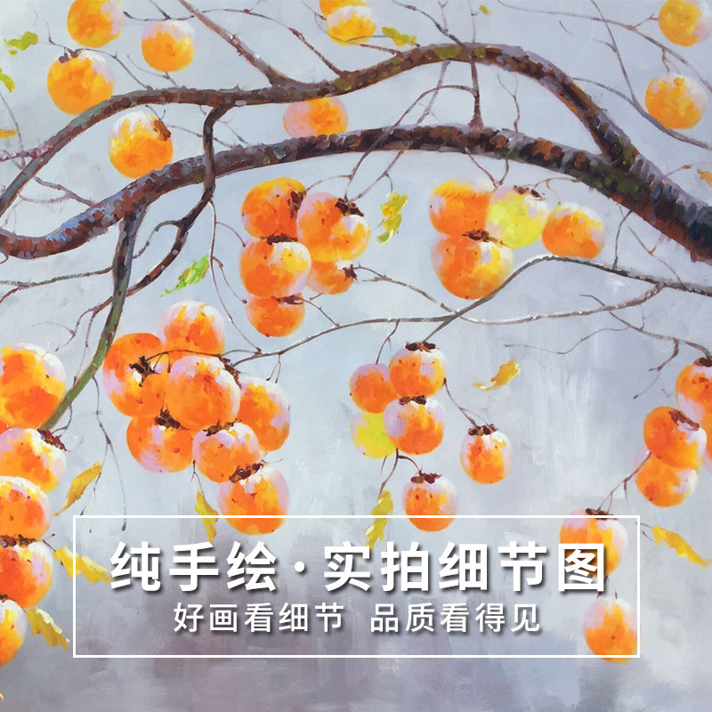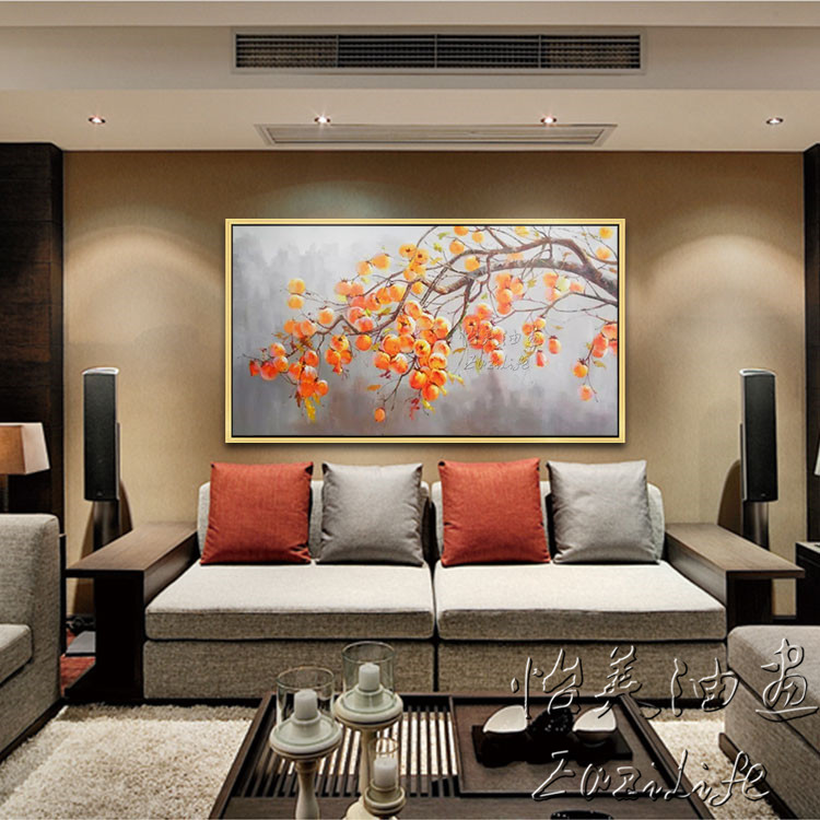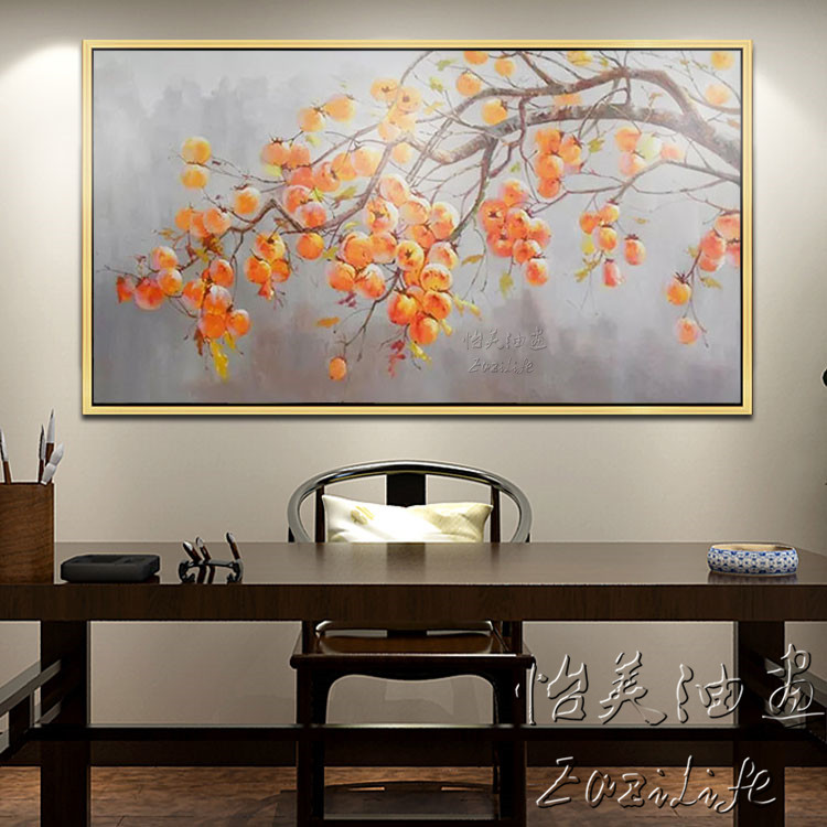 Yimei things as you wish persimmon decoration painting new Chinese living room dining room background wall hand-painted oil painting banner hanging murals