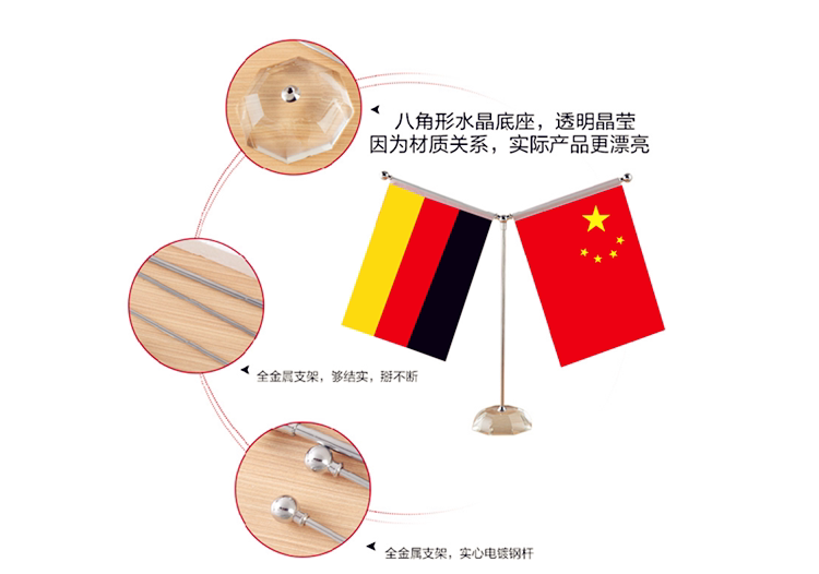 Sino-German table flag round octagonal crystal Y-shaped conference flag party flag desktop small red flag ornaments custom-made