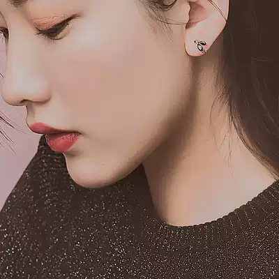 Sterling silver simple and small ear clip female pierced ear needle retro high-end sweet cool dark cold wind fish mouth summer