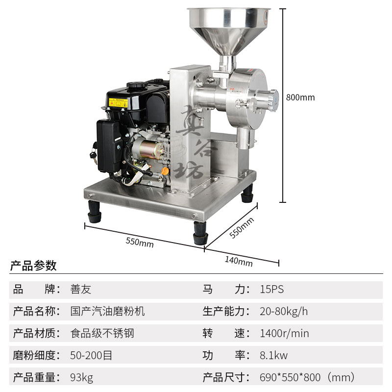 Good Friends Five Cereals Miscellaneous Grain Flour Milling Machine Petrol 15P High Power Commercial Stainless Steel Flour Milling Machine Ultrafine Grinding Machine