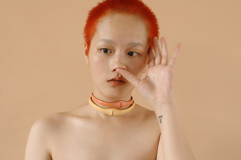 "Alleyes" Choker | leather handmade neck ring | Handring | Orange