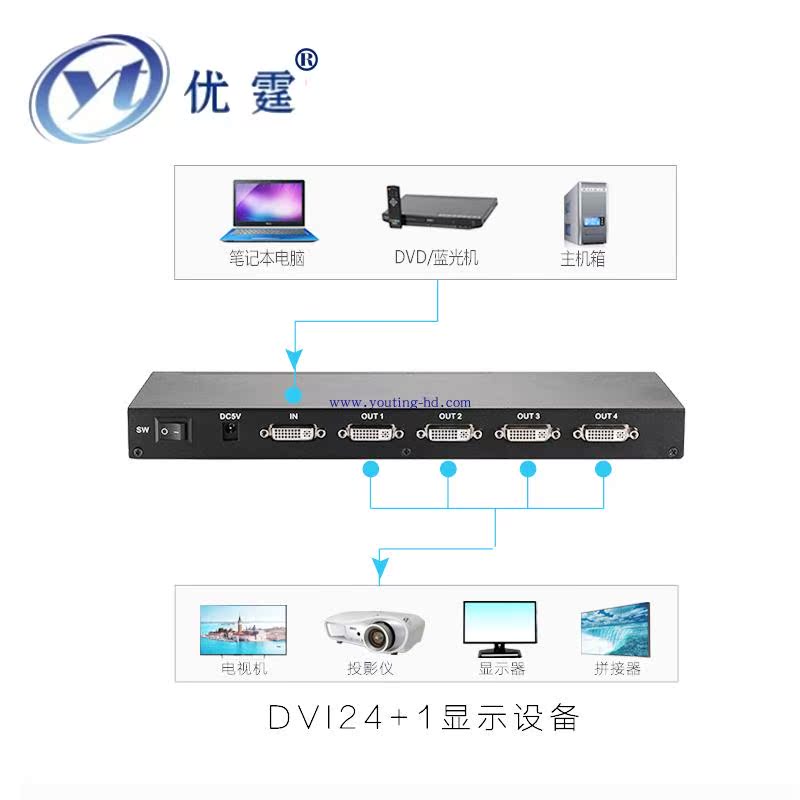 Youting DVI splitter one-point four-branch one-in-four-out splitter 1x4 large screen splicing dedicated 1080P
