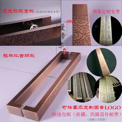 Glass door handle Stainless steel Chinese antique copper Xiangyun sliding door solid wood door Hotel door handle customization