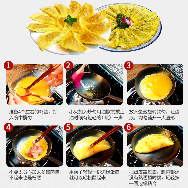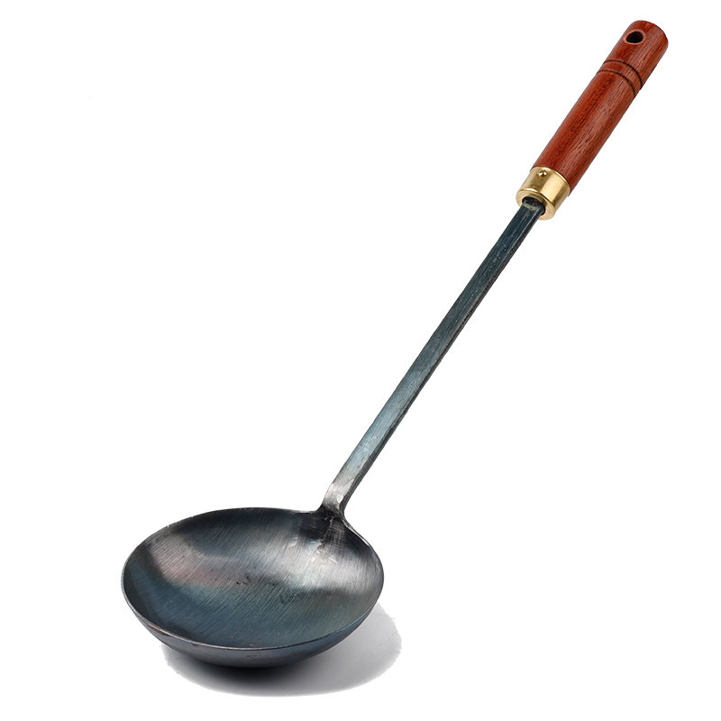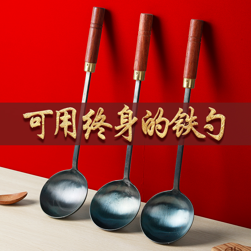 Big family handmade egg dumpling spoon One-piece uncoated long handle household iron pan fried spoon Egg dumpling spoon wrought iron non-stick