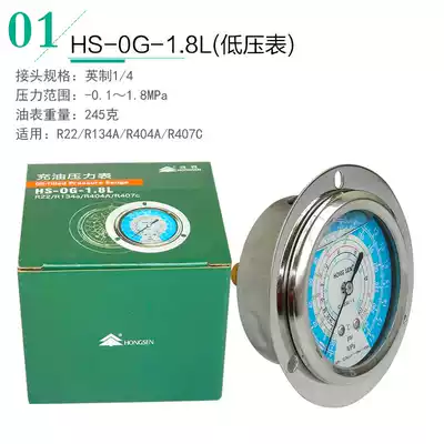 Hongsen oil-filled pressure gauge shaft oil-filled HS-0G-1 8L 3 8H central air-conditioning cold storage high and low oil pressure gauge