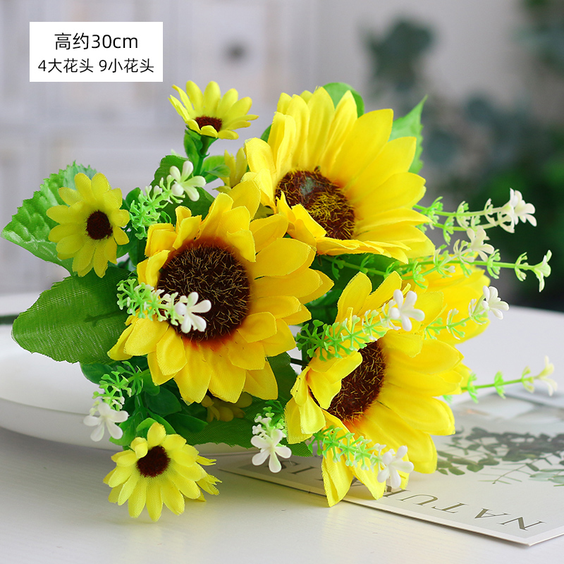 Simulation rose single branch small daisy silk flower plastic dry flower living room adornment peony flower arrangement green planting fake bouquet-Taobao