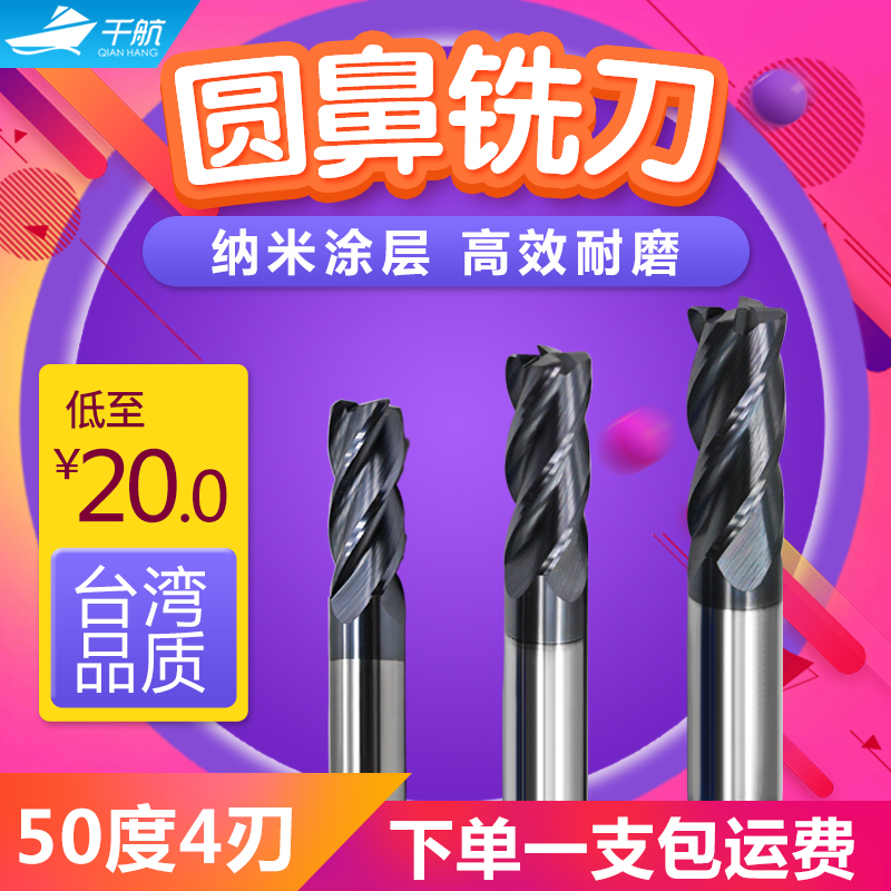 one thousand jet 50-degree tungsten steel milling cutter 4 blades round nose knife tungsten steel lengthened round nose knife coated alloy R angle milling cutter cow nose knife