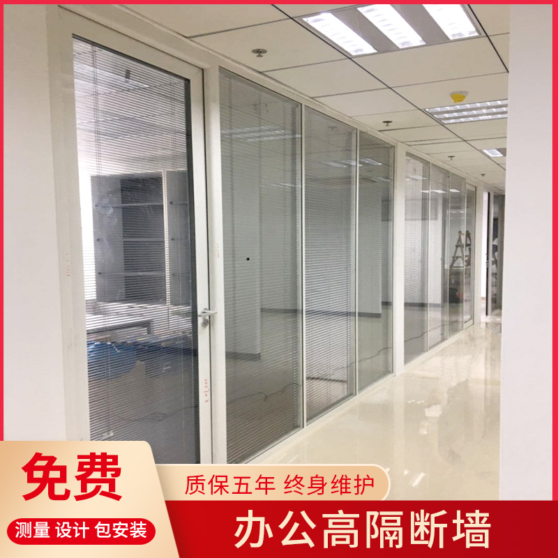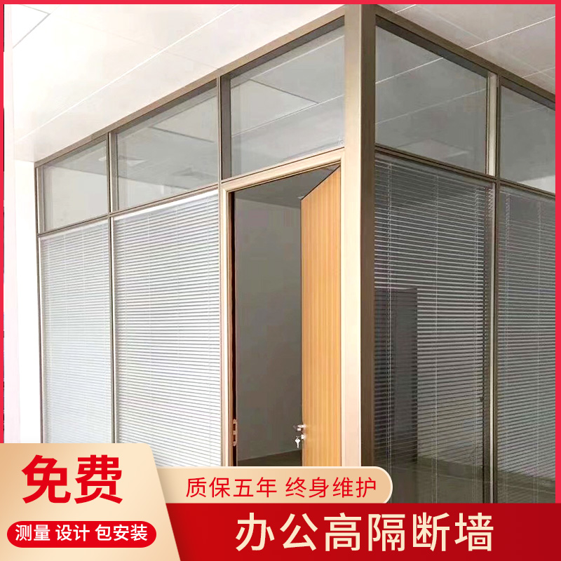 Shantou office glass partition double glass built-in aluminum alloy louver tempered single layer frosted high partition wall Jieyang