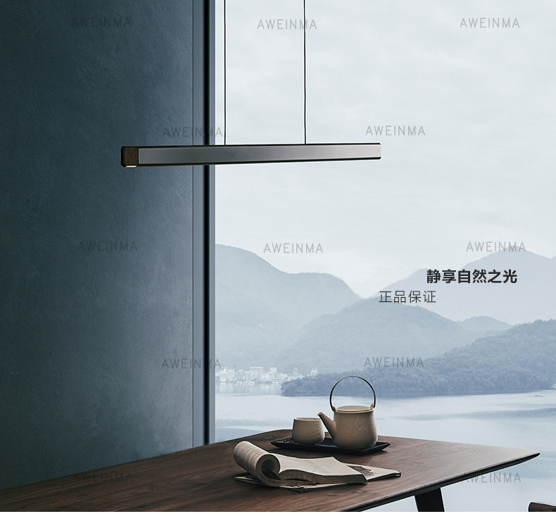 Walnut Nordic LED fishing line long chandelier modern minimalist creative island platform dining room office study chandelier