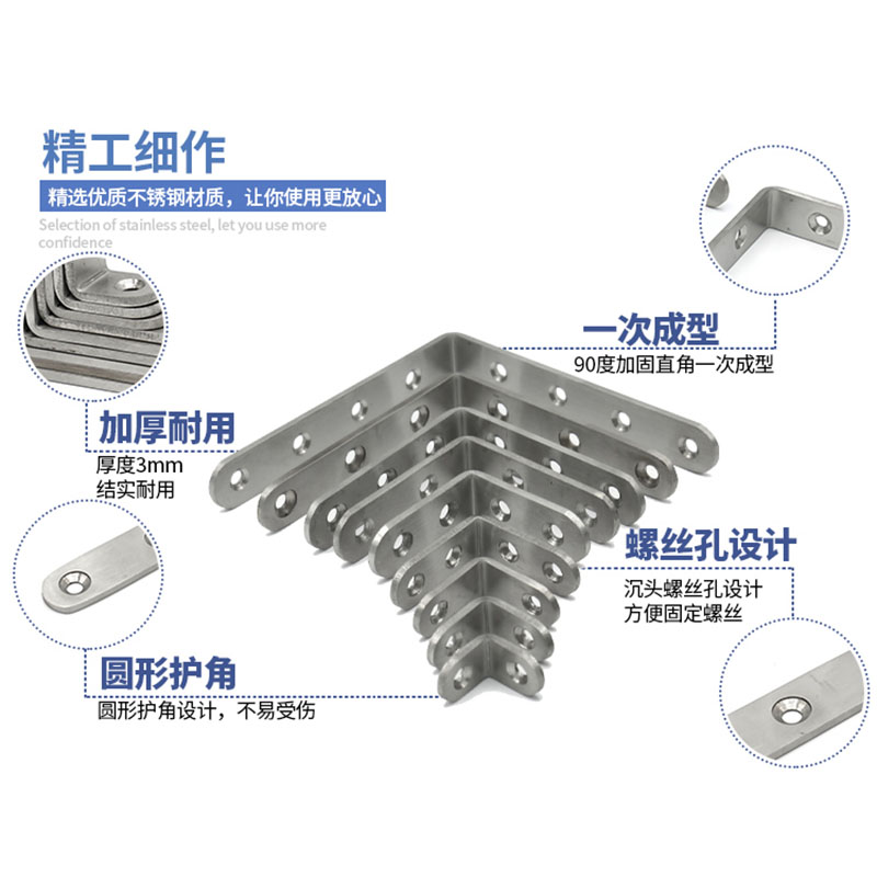 Stainless steel corner code L-shaped 90-degree right-angle fixing piece reinforced triangular iron bracket furniture connector long iron sheet with hole t