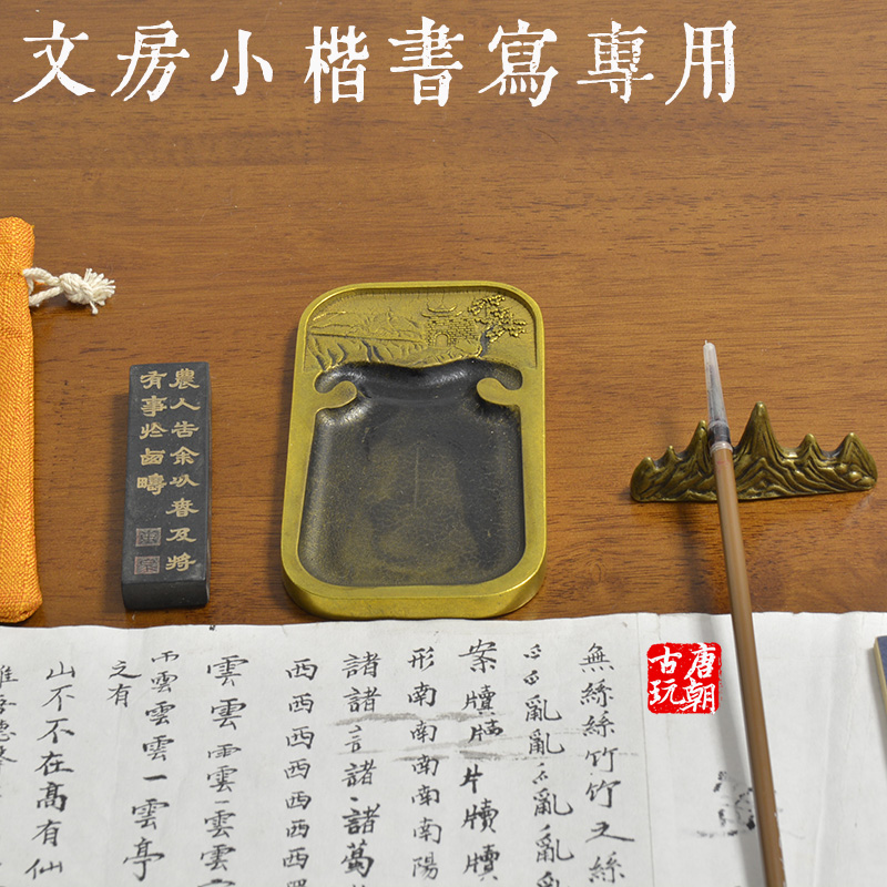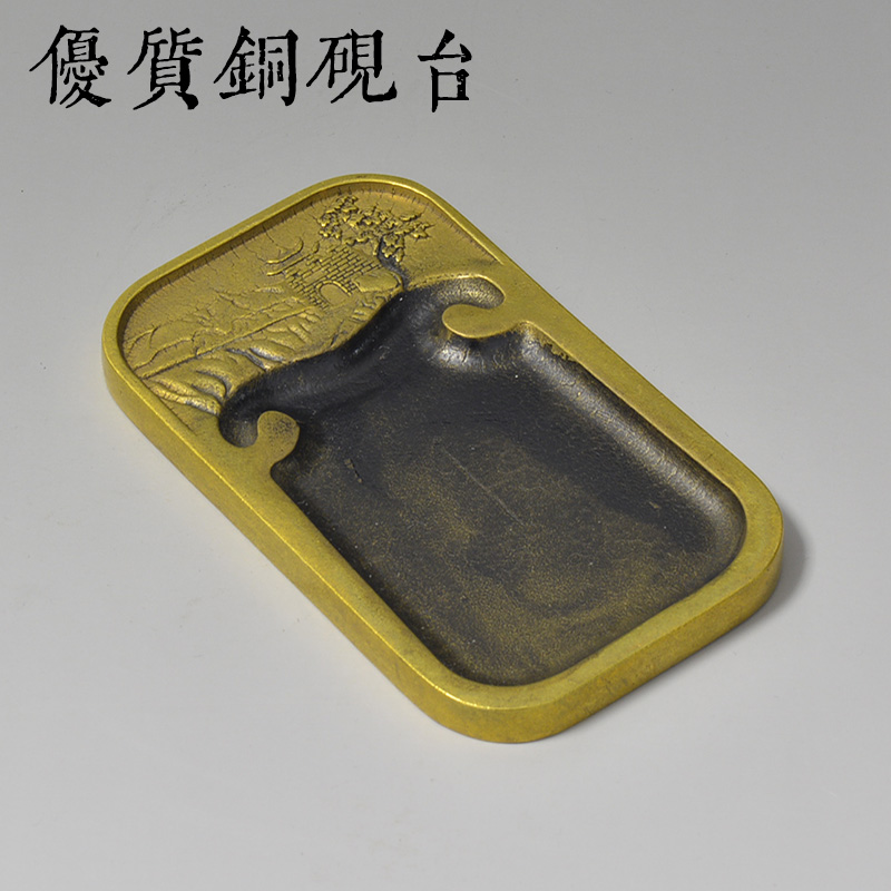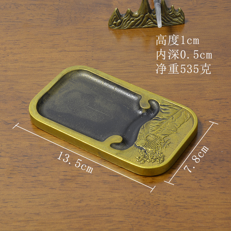 Antique Ink Stone Solid Core Full Bronze Ink Stone Antique Bronze Sculpture Small Ink Stone Students Ink Stone Calligraphy Small Block Pen Licks House Supplies
