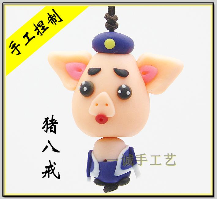 Night market stalls supply soft pottery mobile phone lanyard Pure hand-kneaded pottery charm Jinzhou Soft pottery factory pig