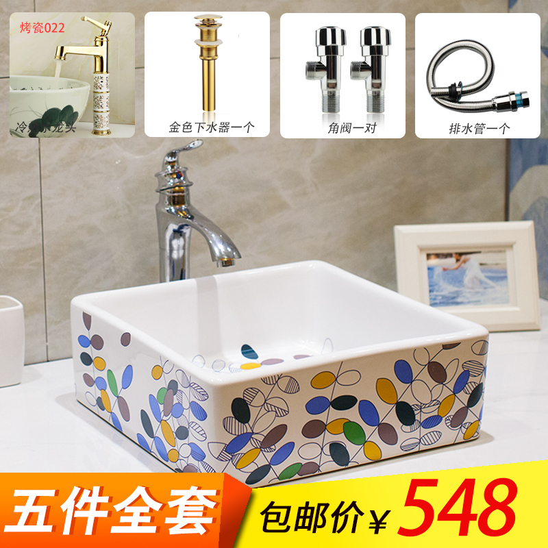 Jingdezhen American Art Basin Terrace Basin Terrace Basin Square Makeup Room Terrace Washbasin washbasin Color Card Tree