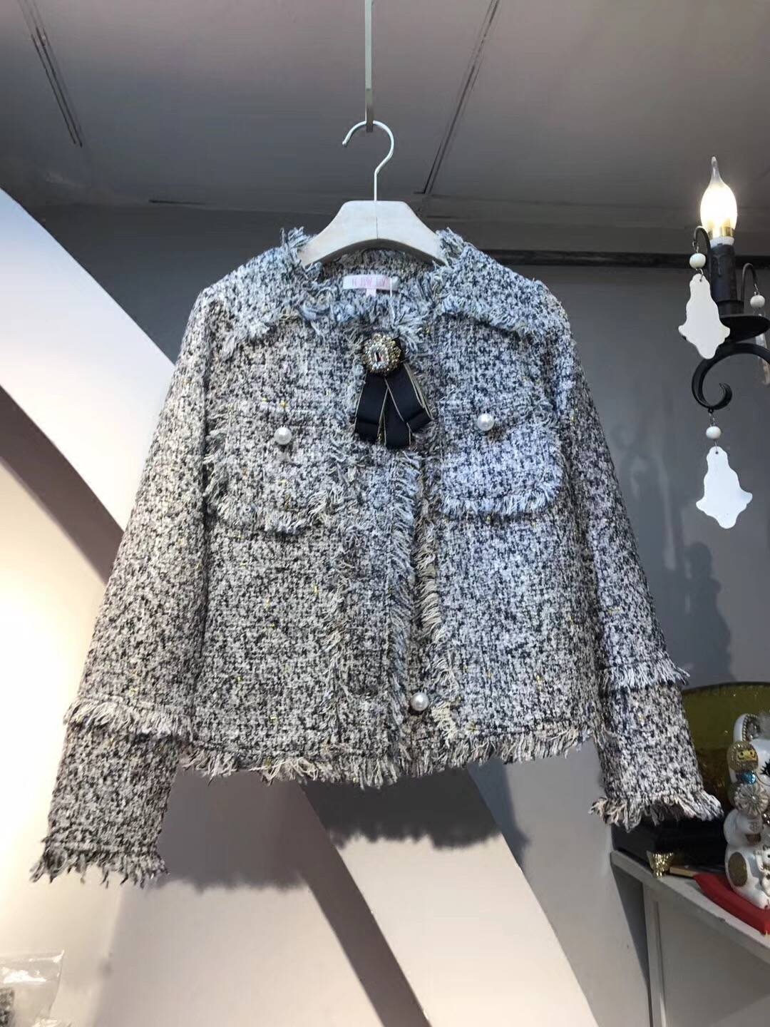 2022 The new famous young Chinese fragrance wear short coat of wear and wear of soda pearl buckle with long sleeve coat