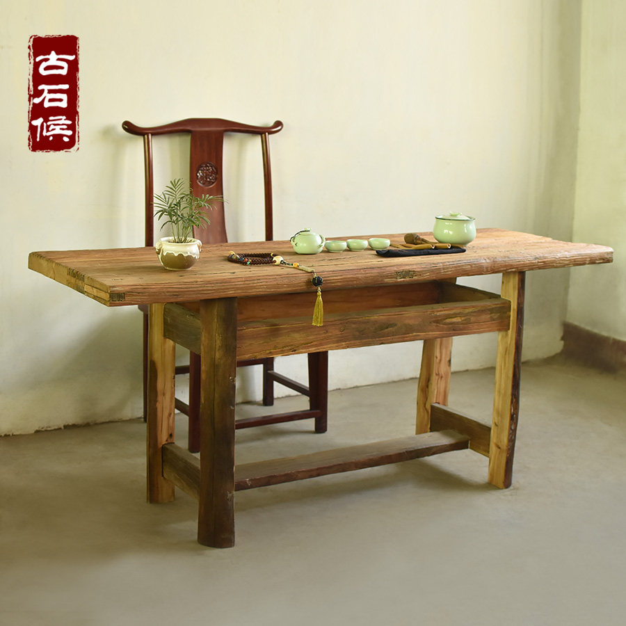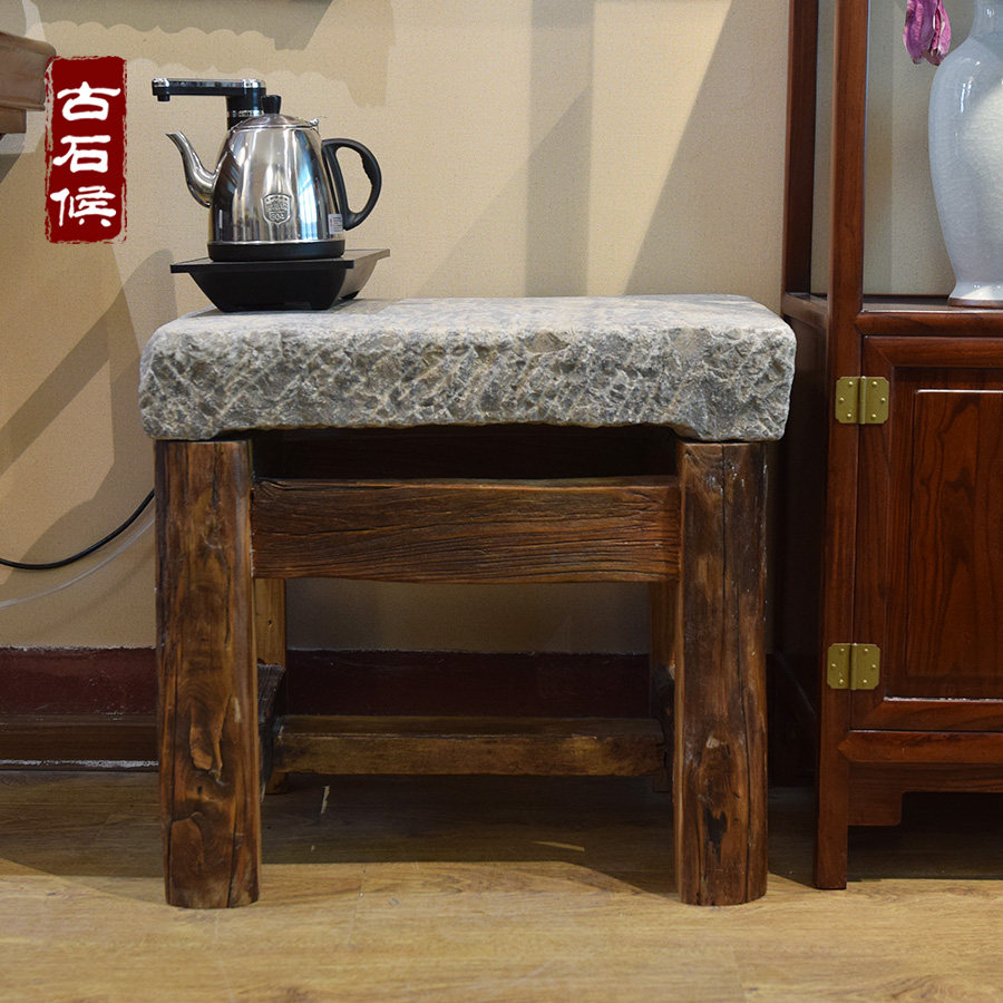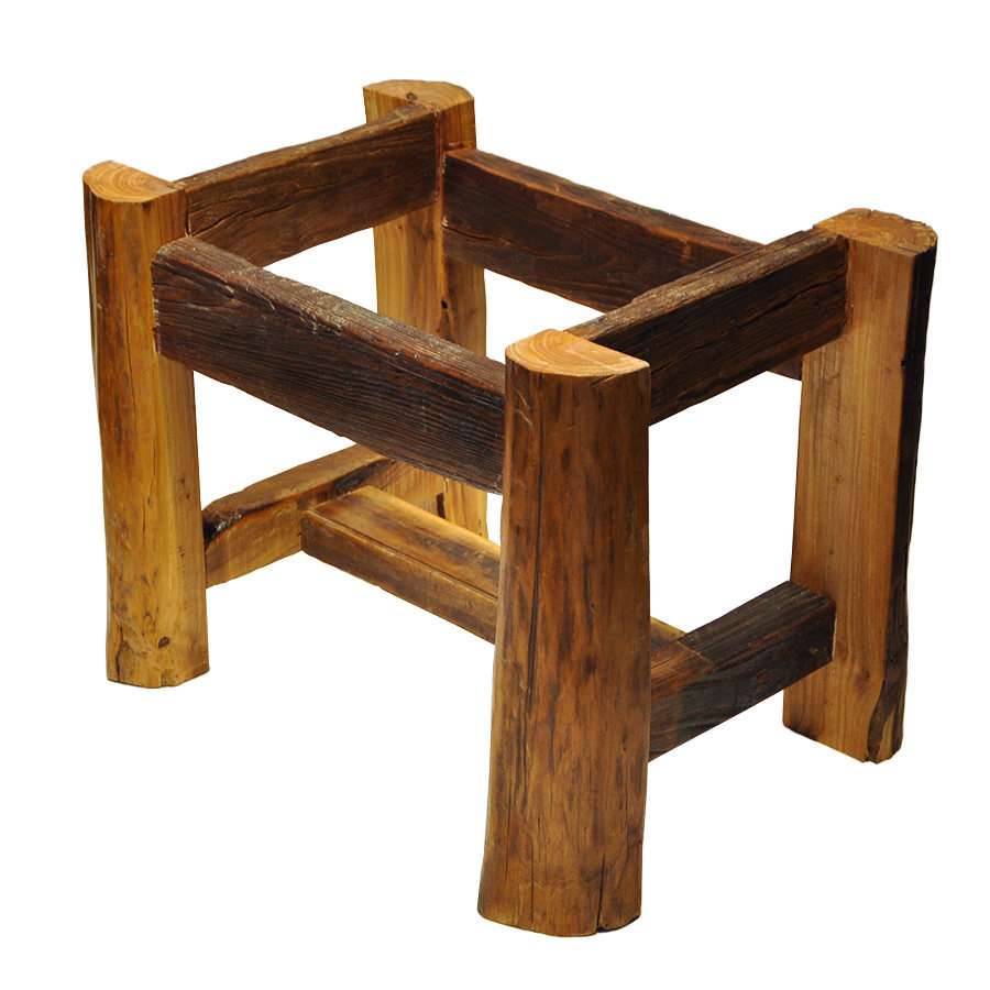 Old Elm Wood Shelf Stone Groove Wooden Frame Base Wooden Pier Weathered Elm Base Tea Tray Solid Wood Shelf Custom Made Furniture