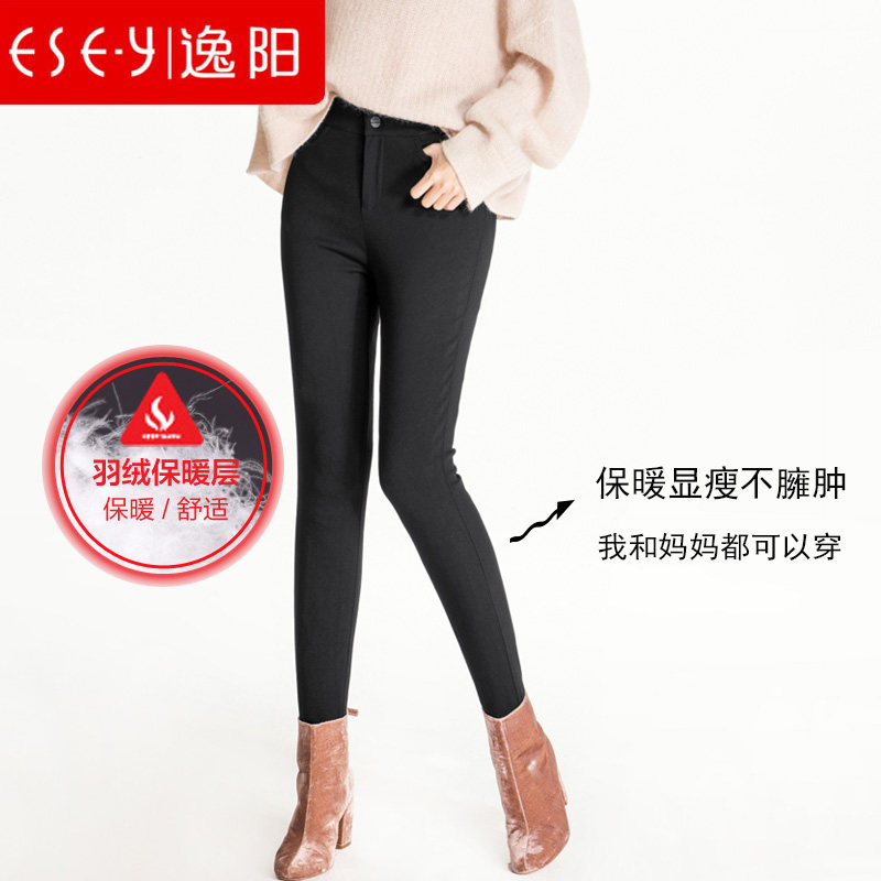 Yiyang Women's Pants 2021 Winter New High Waist Down Underwear Pants Women's Outer Wear Plus Velvet Black Small Feet Thickened Warm Pants