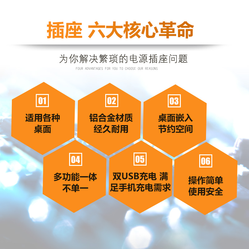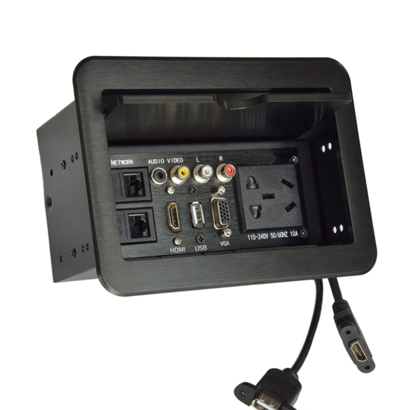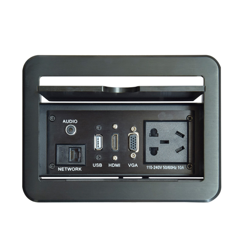 Multimedia desktop socket hidden office conference wiring-free information box aluminum alloy slide multi-function socket