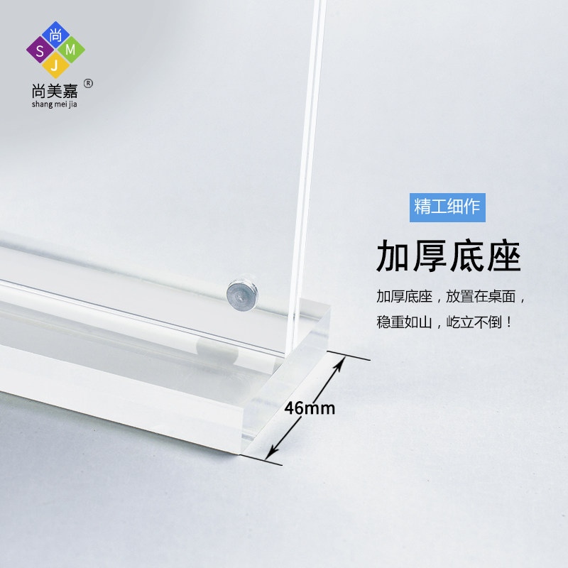 Shangmeijia Table Card A4 Strong Magnetic Table Sign Acrylic Table Transparent A5 Price Billboard Crystal T-Frame Price List Menu Display Card A6 Standing Double-sided Table A3 Customization