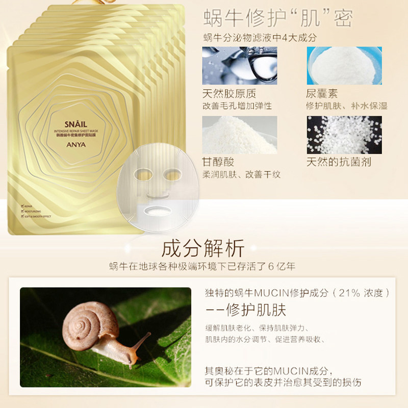ANYA hanya snail repair mask moisturizing moisturizing astringent pores firming brightening skin tone acne marks sensitive skin