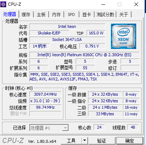 Intel XEON SECOND-GENERATION PLATINUM PLATINUDE 8260 CPU 24 24 48 FULL LOAD 3 0G 3 9G