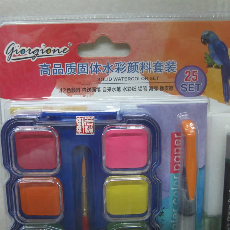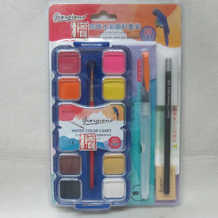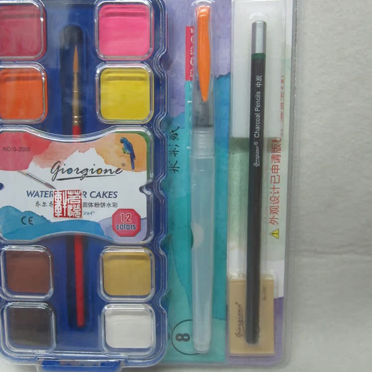 Joercione G-2000 solid water color paint suit 12 color water color powder cake with water-based pen pencil eraser