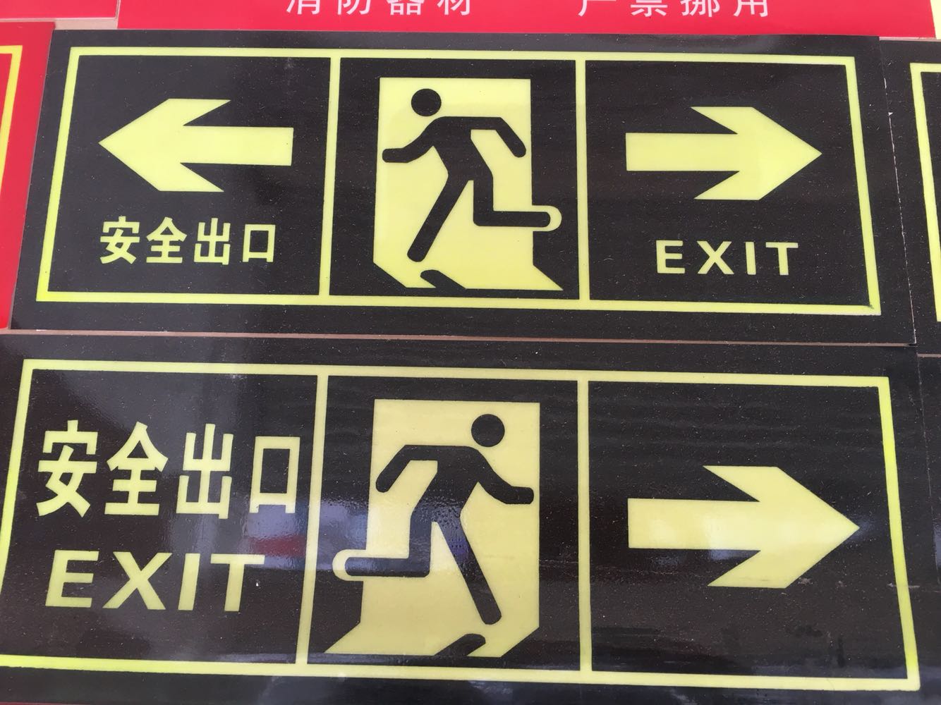 Fire safety indicator luminous fluorescent LED safety exit arrow evacuation sign prompt warning landmark