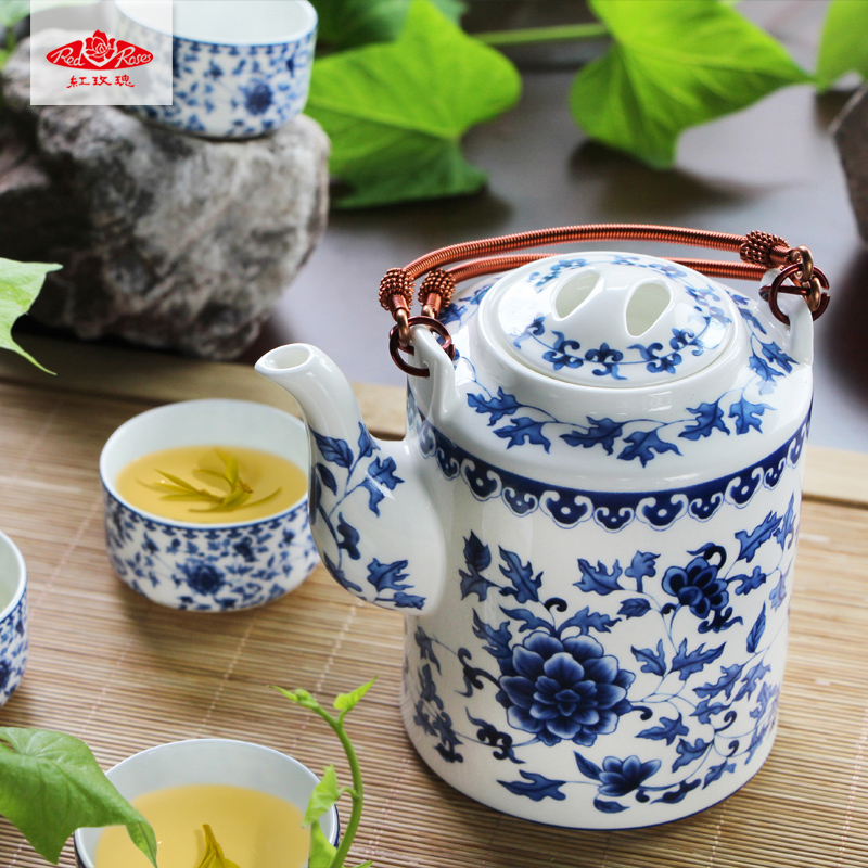 Tangshan red Rose bone porcelain Kung Fu tea set Blue and white porcelain Chinese tea set gifts Exquisite tea set gifts