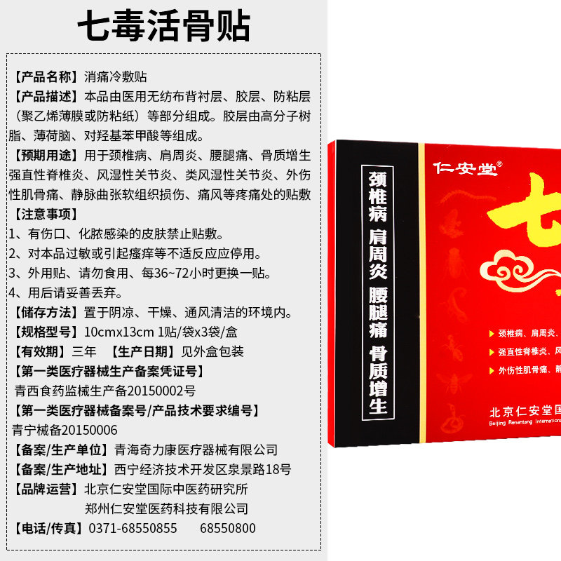 Seven-poison live bone patch (3-stick box) (buy a box to send in a box and so on) Seven-poison rib pain patch (4 patch box) (buy a box to send a box of a box for a box and so on) Five poisonous fire dragon stices (3 sticks