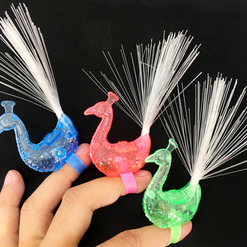 Luminous Finger Lamp Peacock Open Screen Fiber Optic Lamp Children's Gifts Night Market Supply Creative Toys Street Stall Student Gifts