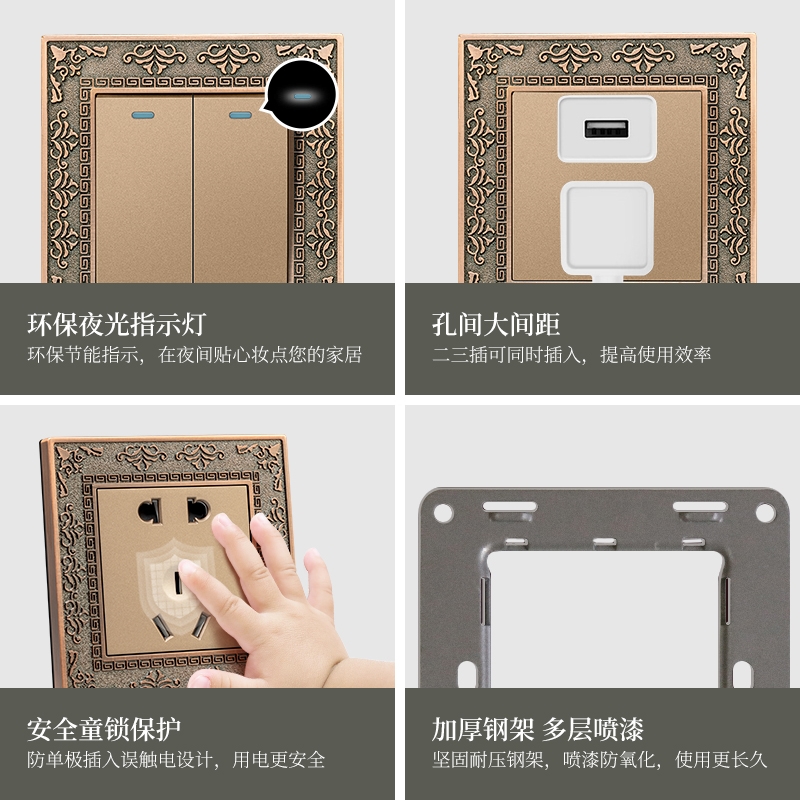 One open single control One open double control One open multi-control two open double control two open double control three open single control three open double control three open double control four open double control four open double control five-hole socket oblique five-hole socket 16A air conditioning three-hole socket seven-hole socket one open double with 16A one open double with five-hole computer socket telephone socket TV socket TV computer socket double computer socket telephone computer socket five-hole usb socket blank panel ten-hole socket fifteen-hole socket twenty-hole socket two color optional, message customer service or remarks 4D embossed red bronze (18mm small hole) 4D relief red bronze 35mm