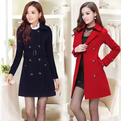 Work clothes, woolen coats, autumn and winter overalls, waist, slim and thickened Nizi, medium and long version of woolen coat women
