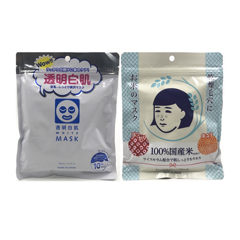 White myofacial mask 1 Pack 10 slices of tender white Tired rice mask 1 Pack of 10 sheet collecting pores elasticity