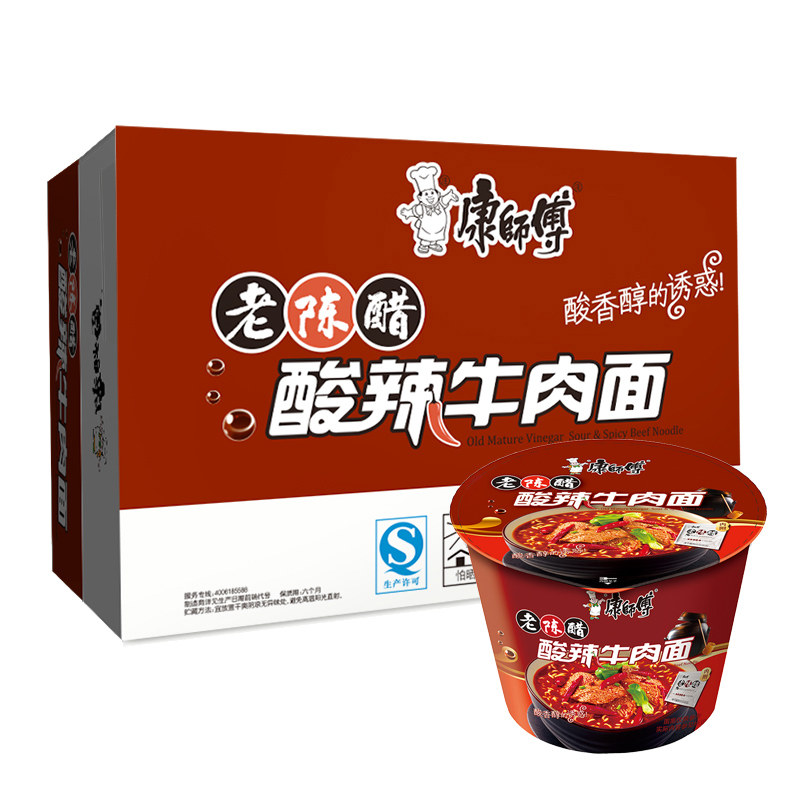 Master Kong instant noodles barrel noodles authentic old Chen acetic acid spicy beef noodles 122g*12 barrels whole box of instant noodles