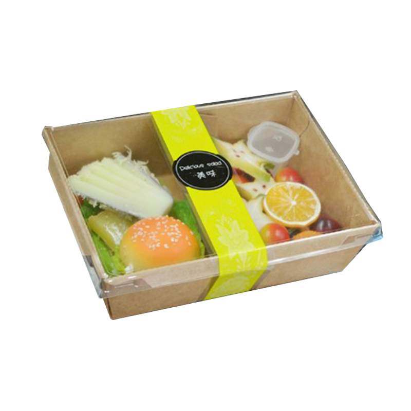 Fruit salad packaging box transparent disposable creative kraft paper with anti-fog cover 100 sets packaging box