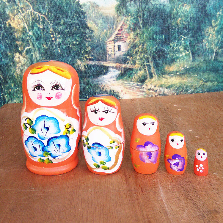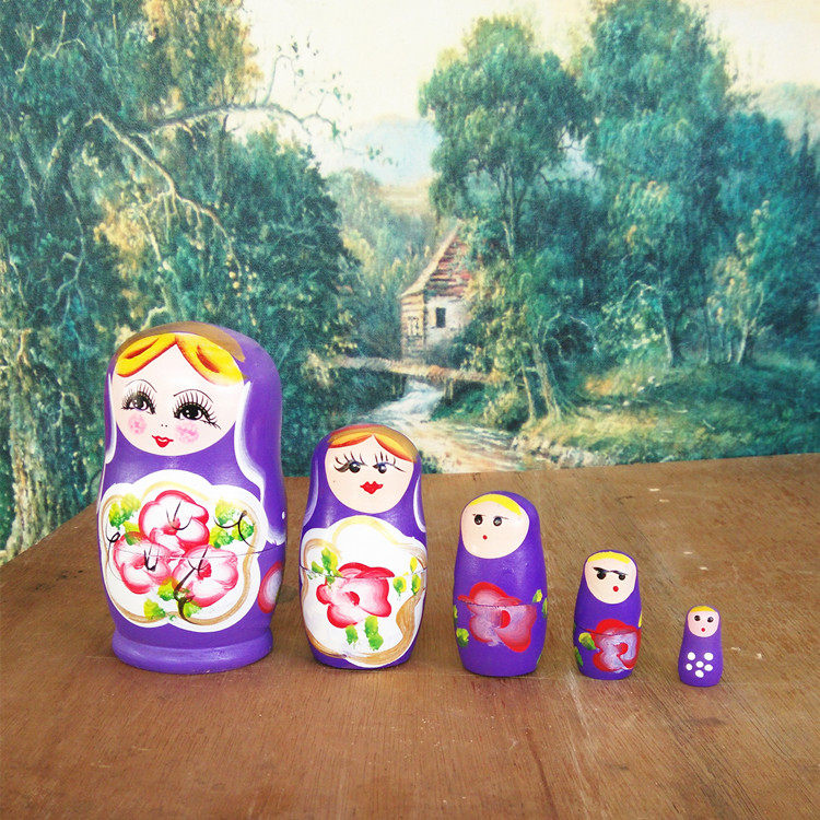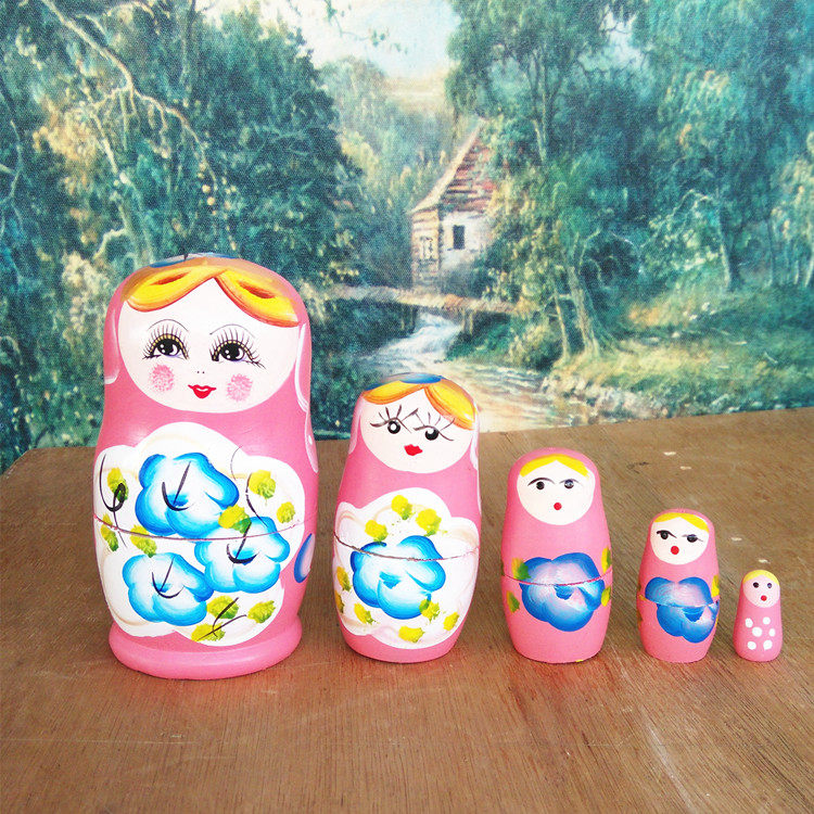 National handmade wood painted matryoshka doll, wooden five-layer oil doll, children's play doll, tourism handicraft matryoshka doll