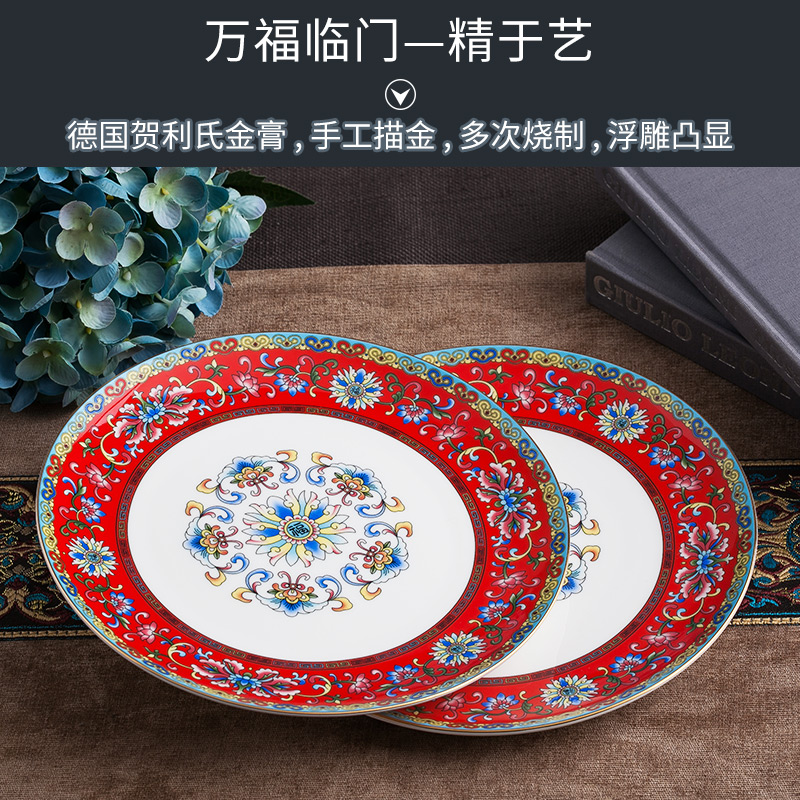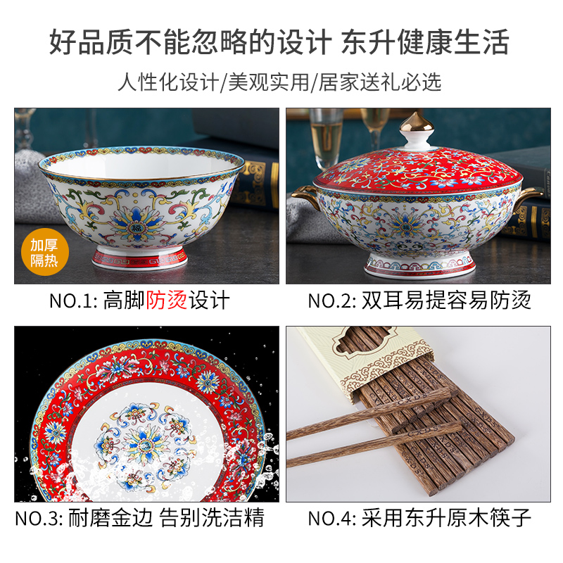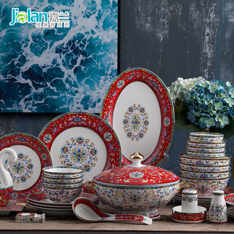 Full set of bowls and plates Set Full set of cutlery Household wedding chopsticks set 10 gift boxes Enamel color wedding
