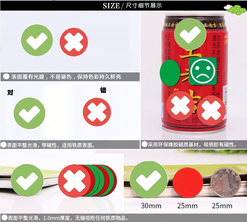 Right and wrong reward whiteboard marker magnetic stickers Refrigerator stickers Creative magnets Kindergarten children stickers Encourage blackboard stickers