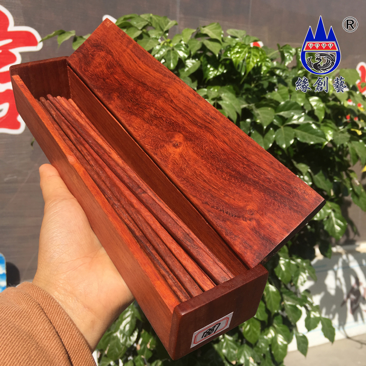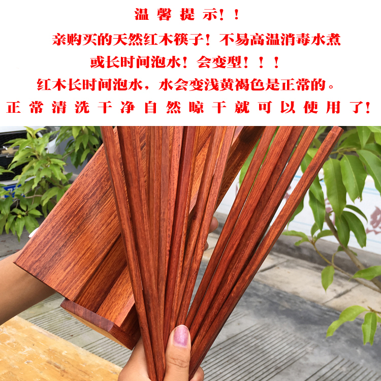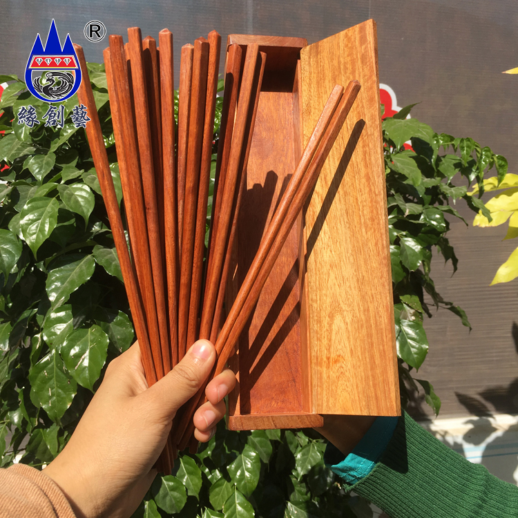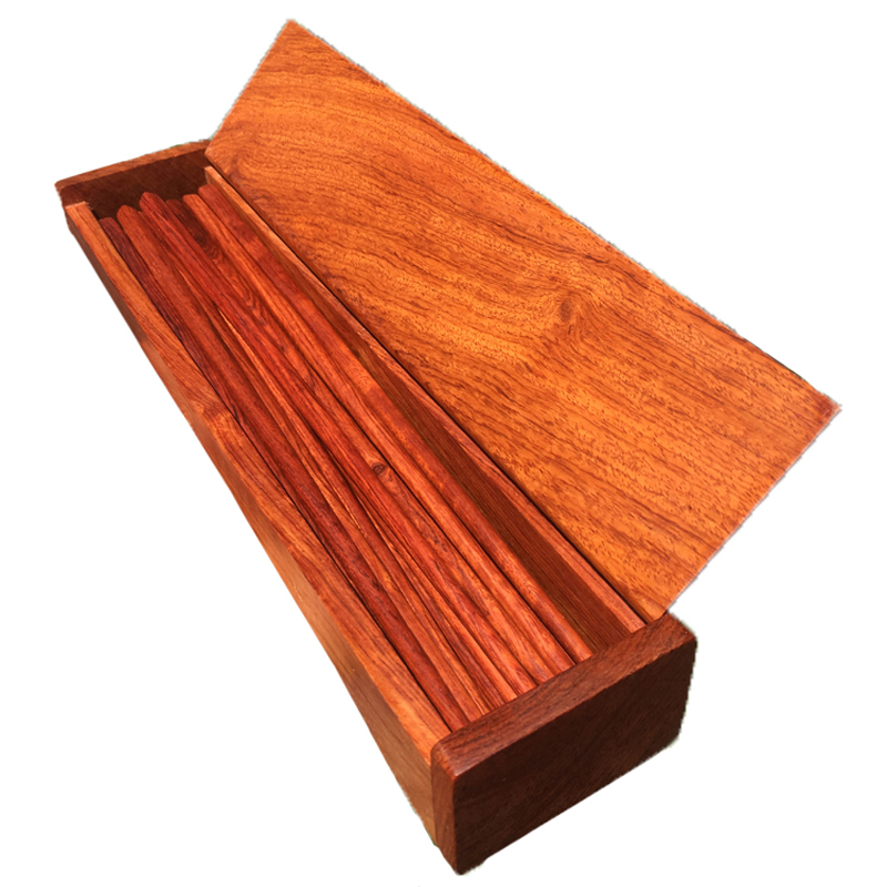 Red Wood Chopsticks 10 Double boxed solid wood in solid wood One figure Myanmar flower pears Home without paint Healthy Quality Chopsticks