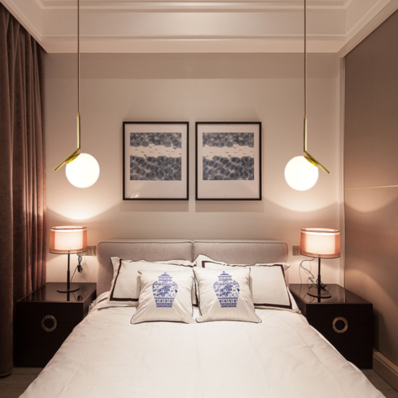 Nordic post-modern dining room chandelier bedroom lamp glass ball round clothing store lamp creative single head bed small chandelier