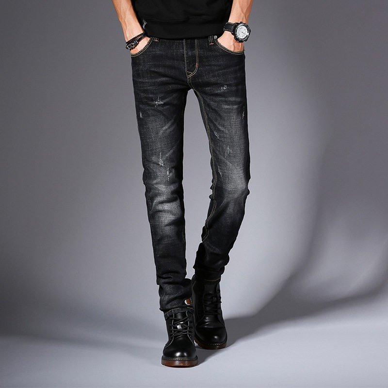 Spring and Autumn Tide Brand Jeans Men's Small Feet Slim Korean Version Trend Youth Elastic High-end Men's Retro All-match Pants