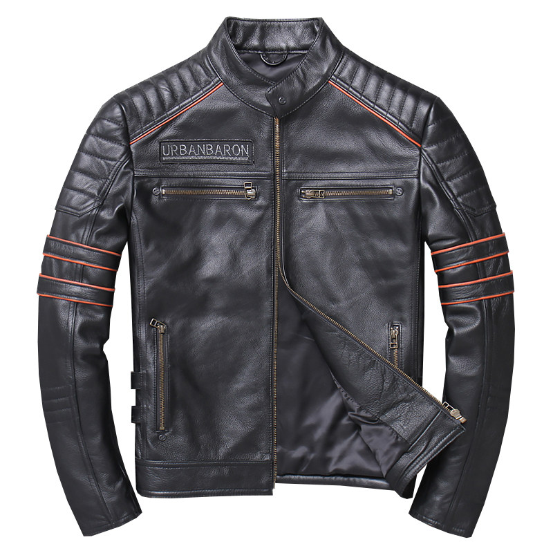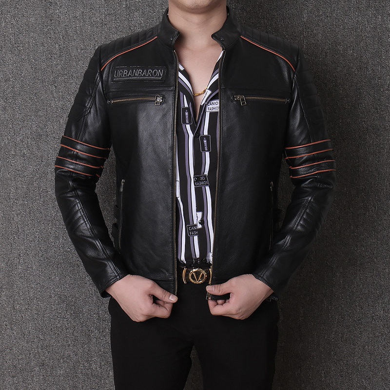 Real leather fur coat men sashimi shorts Locomotive Embroidery Skulls Skull Khale Head Layer Thick Cow Leather Jacket Moron Riding Suit