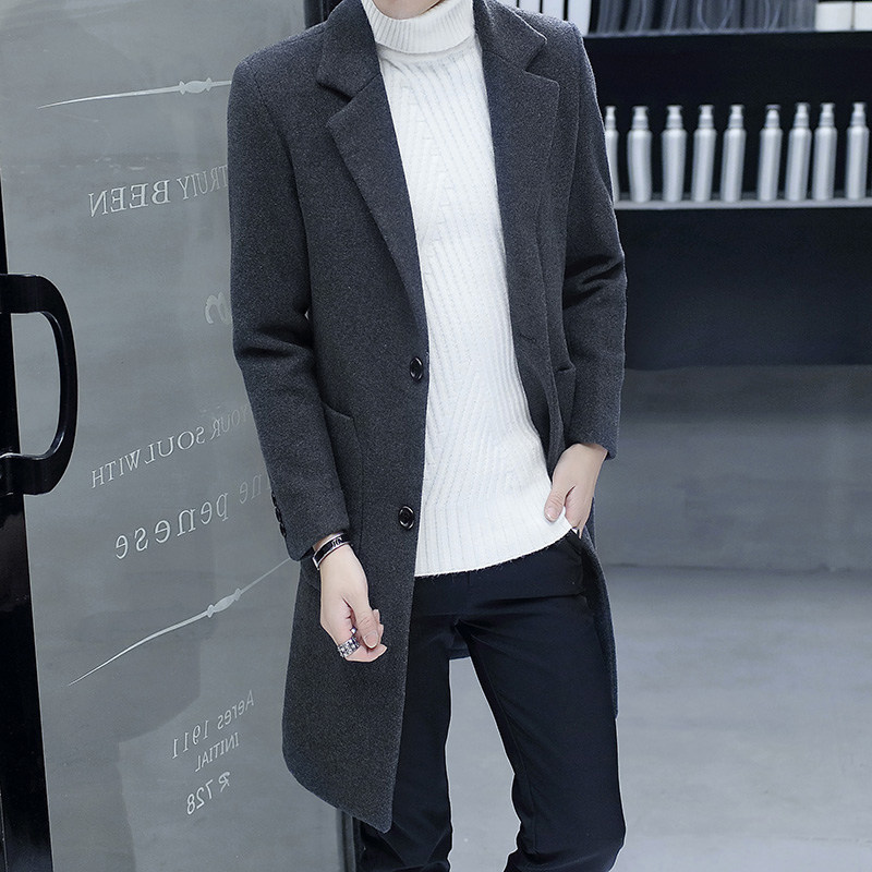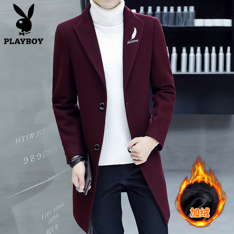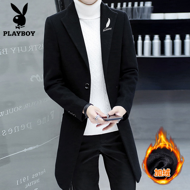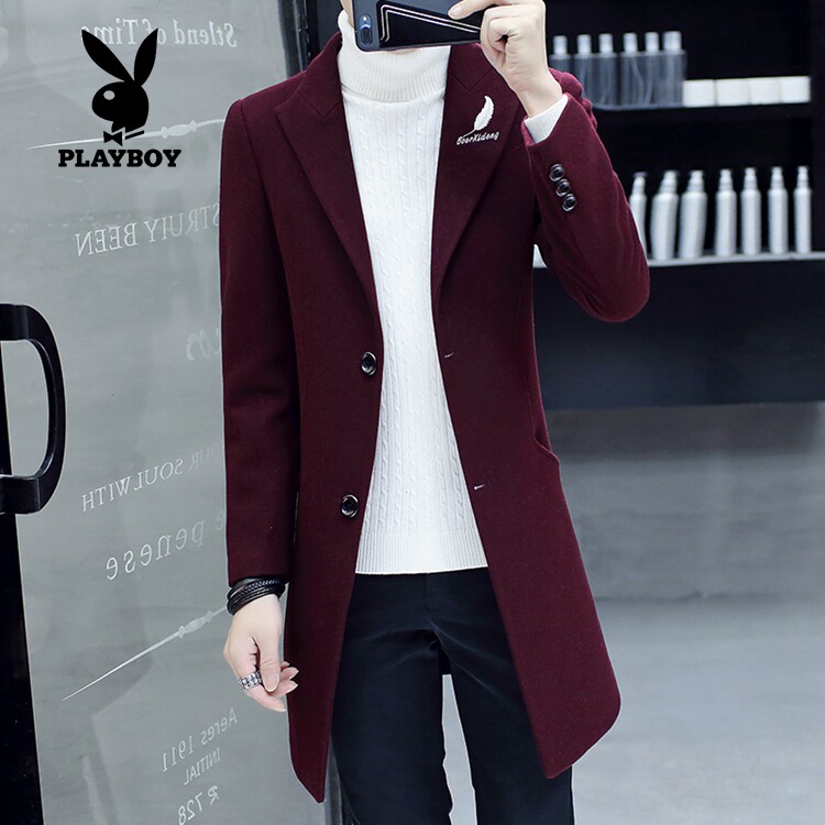 Playboy trench coat men's mid-length Korean version slim and handsome new men's wool coat long winter coat