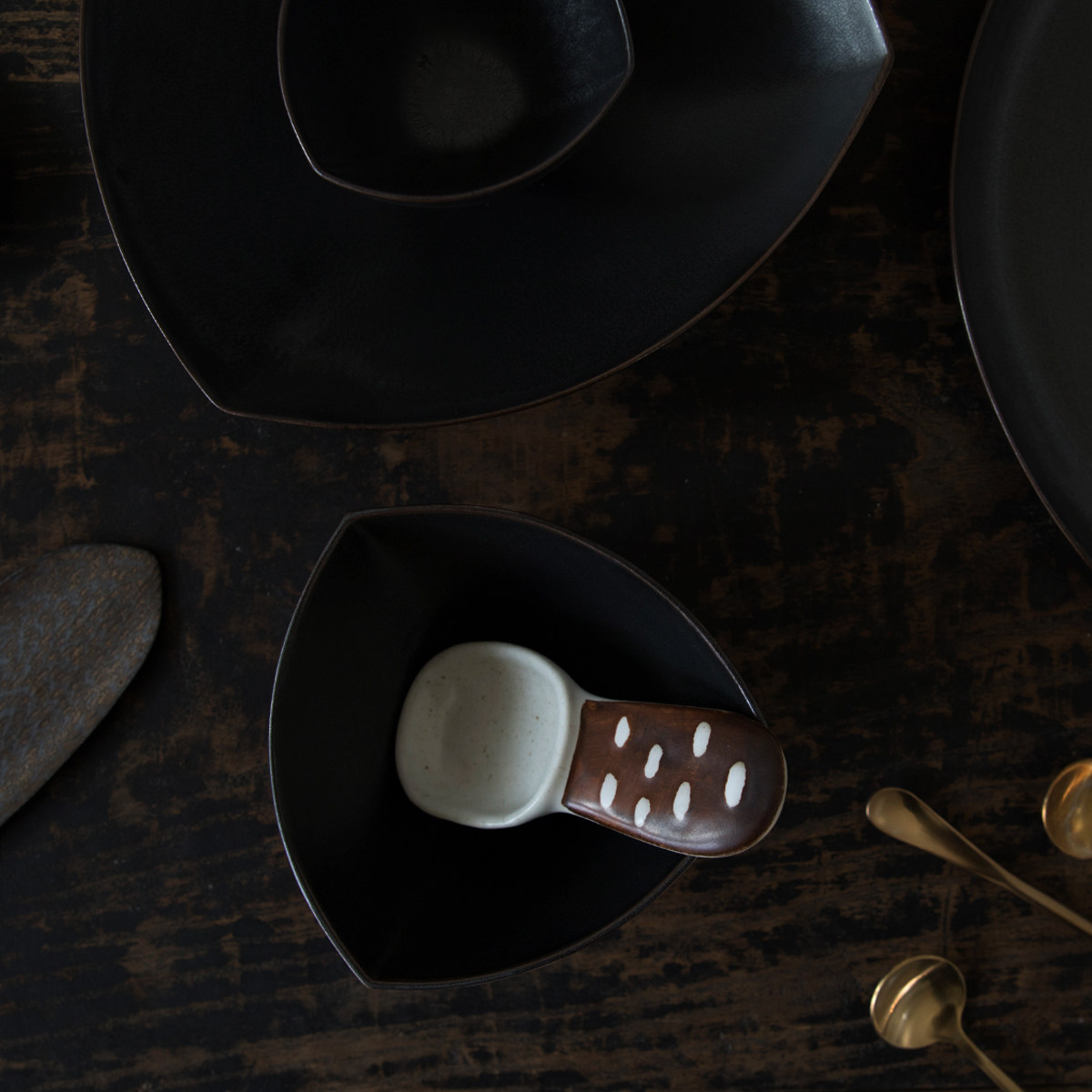 Three Homes Handmade Retro Coffee Spoon Soup Spoon Day Style Ceramic Sweet Spoon Small Spoon Creative Breakfast Spoon Small Dish