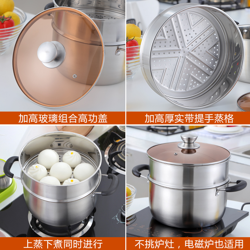 Soup pot stainless steel 304 household thickened pot stew pot cooking pot porridge pot Induction cooker gas single layer 2-layer small steamer